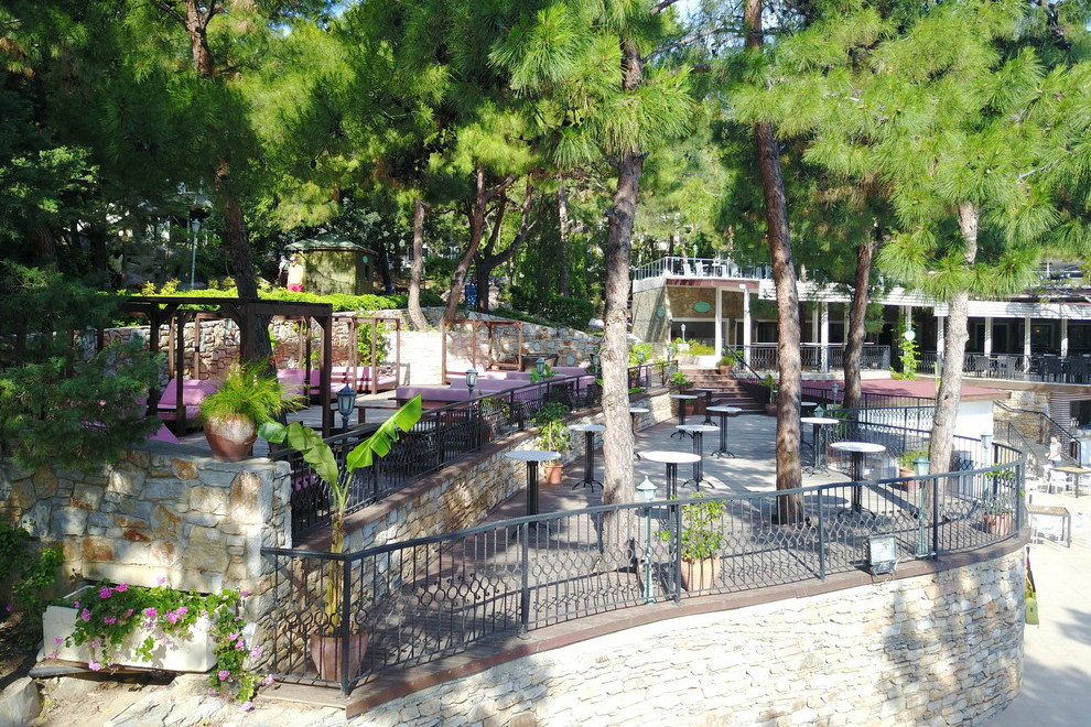 Собствен пясъчно-чакълест плаж, отличен със Син флаг и платформа. На разположение на гостите има 1 открит басейн с 5 водни пързалки и закрит басейн.