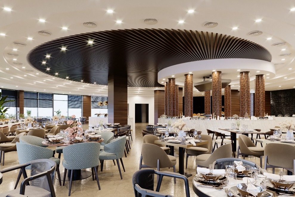 На разположение на гостите са 1 основен ресторант с открита и закрита секции и 1 а`ла карт ресторант, 3 бара. All inclusive концепцията включва закуска, обяд, вечеря, междинни хранения, местни алкохолни и безалкохолни напитки.