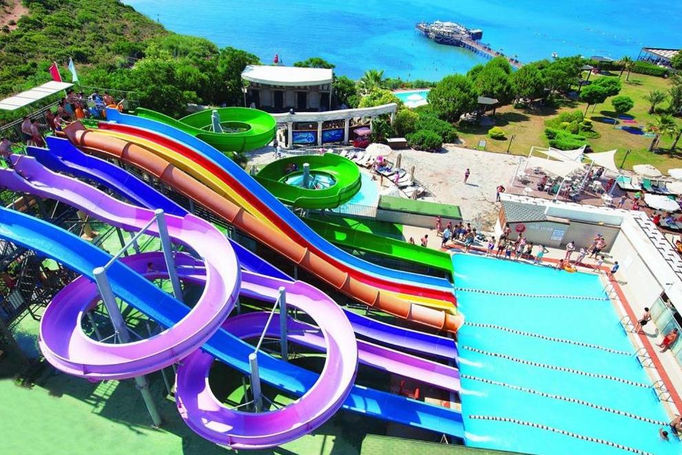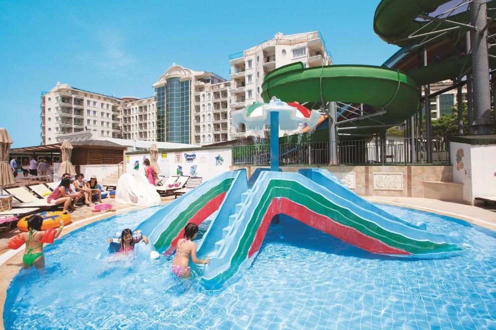 Собствен пясъчен плаж и кей. Хотелът има също 2 открити басейна, закрит басейн, 2 водни пързалки за възрастни и деца, 2 детски басейна. Шезлонги и чадъри, матраци, кърпи се предоставят безплатно.