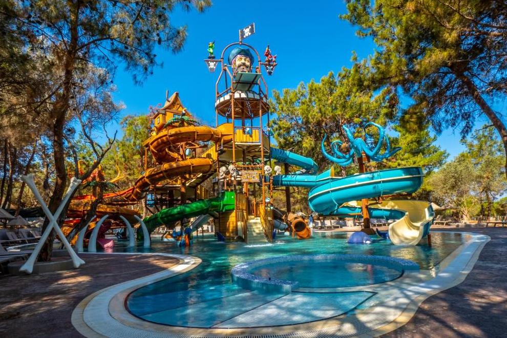 Хотелът разполага със собствен пясъчно-чакълест плаж, дълъг 350 м и кей. Има също 2 открити басейна с прясна вода, детски басейн и водни пързалки. Чадъри, шезлонги, матраци и плажни кърпи на плажа и при басейна се предоставят безплатно.