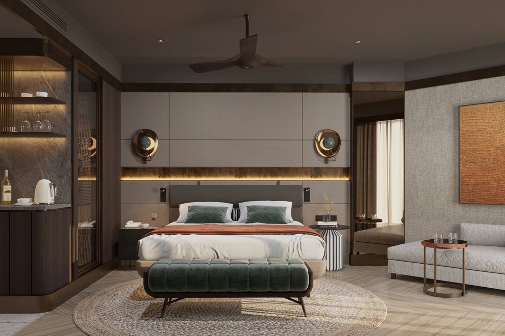 Състои се от осемнадесет 4-етажни сгради (има асансьори). В тях са разположени 561 климатизирани стаи. Те са оборудвани с телефон, телевизор, минибар, сейф, самостоятелна баня, халат, чехли, тоалетни принадлежности, сешоар, безплатен Wi-Fi, тераса. Стаите се почистват ежедневно.