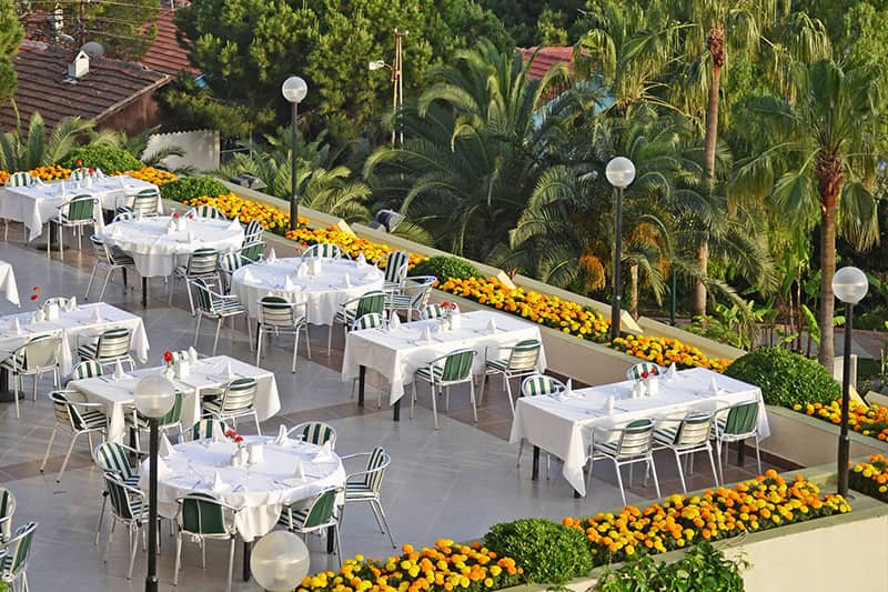 На разположение на гостите е основен ресторант Nostalgia, отворен за закуска, обяд, вечеря и късна вечеря. Ресторант Алегро (бюфет, отворен от 01.06 до 30.09): предлага леки закуски от 12:30 ч. до 16:00 ч., чай и сладкиши от 17:00 ч. до 18:00 ч. 3 а'ла карт ресторанта - рибен, международна кухня, турски (с предварително записване за едноседмичен престой - посещението на един от ресторантите е безплатно). Разнообразни напитки се предлагат в 5 бара - Ballade - работи денонощно, Blues, Bolero, Hula и Terrace.
