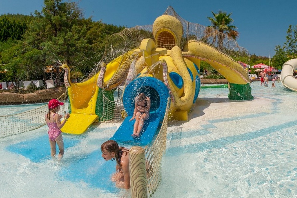 На територията на хотела се намира един от най-големите аква паркове в Турция. Аква паркът разполага с 31 водни пързалки, сред които няколко екстремни, центрофуга, басейн с вълни, подходящ за любителите на силни усещания. За децата има голяма детска зона с пиратски кораб и 6 пързалки.