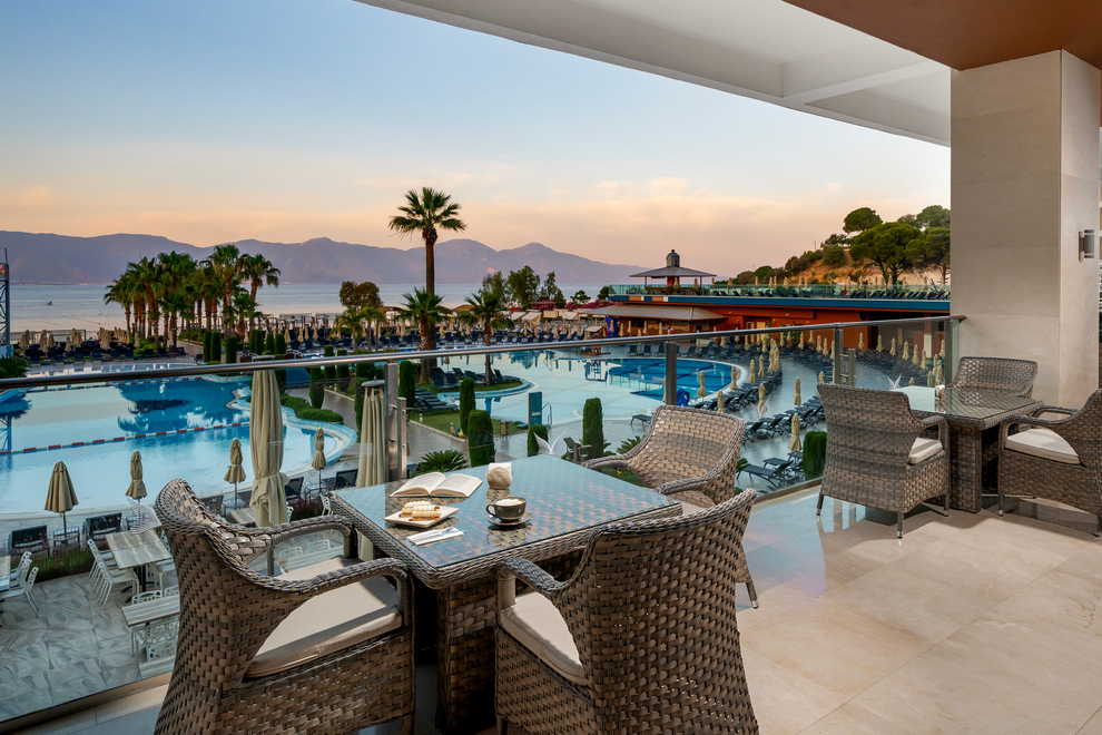 Deluxe Suite Side Sea View със странична гледка море разполагат с 1 двойно и 1 единично легло, площ 62 кв.м, максимално настаняване 2 + 1 дете