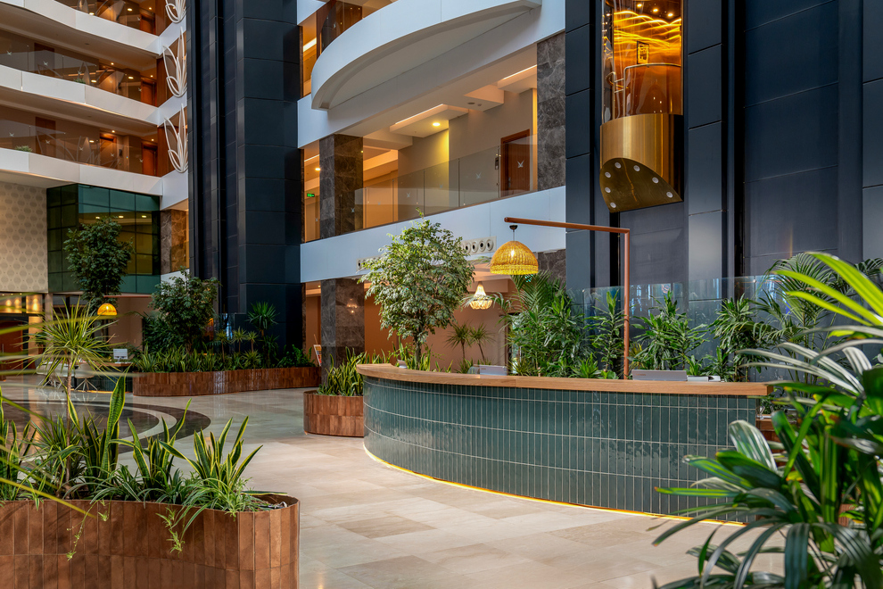 Хотелът се състои от една 9-тажна сграда, в която са разпределени 392 климатизирани стаи, от които: