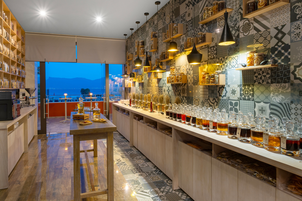 На разположение на гостите са основен ресторант за закуска, късна закуска, обяд, вечеря. Booze & Snack a la carte ресторант е отворен за обяд от 12:00 - 17:00 ч. Сладкарницата работи денонощно. 5 а`ла карт ресторанта: Seven, Mi Restaurant, Lime Mexican (безплатнo, с предварителна резервация чрез приложението Liberty), Dolce Vita Italian и Yamas (срещу заплащане, с предварителна резервация чрез приложението Liberty). Разнообразни напитки и закуски се предлагат в 6 бара: Timeless Bar (работи денонощно), Palm Court Bar, Tokyo Bar, Milkshake & Smoothie Bar, Penthouse Adult Bar (16+), Booze & Snack Pool Bar 10:00-18:00 ч.