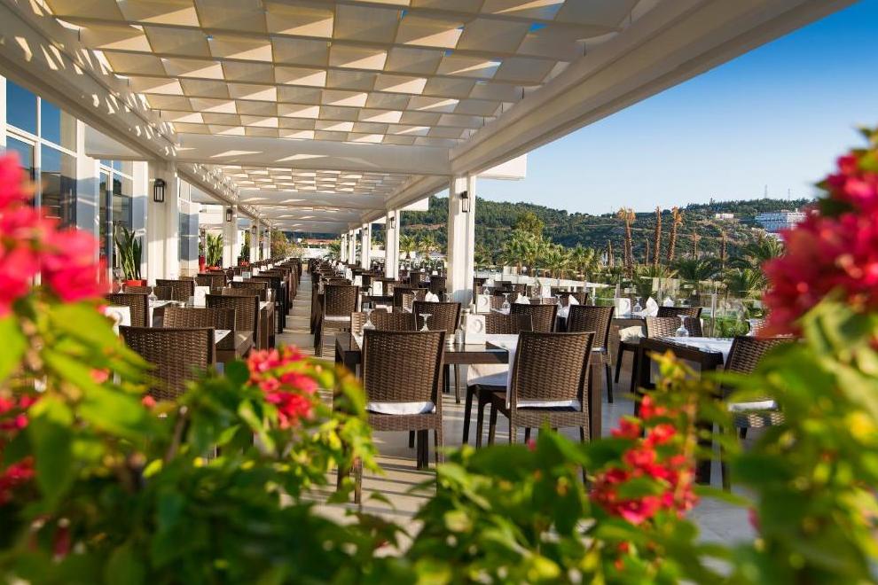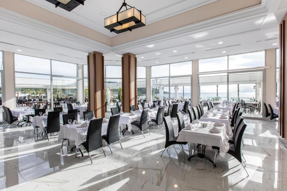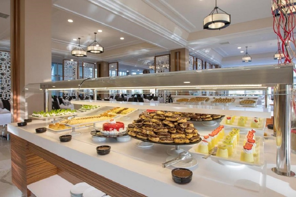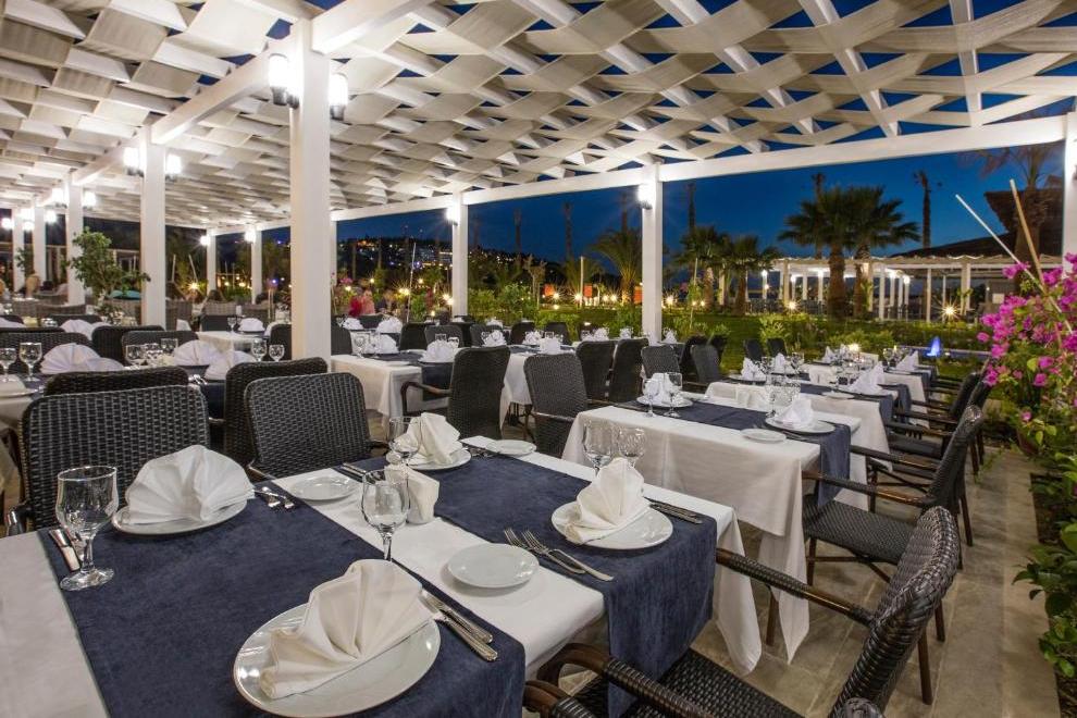 Хотелът разполага с основен ресторант. Има също 4 a'ла карт ресторанта: мексикански, италиански, рибен и турски, които се посещават с предварително записване (за време на престой от мин. 7 нощувки, посещението на един от ресторантите е безплатно). Освежаващи напитки гостите могат да опитат в баровете - лоби бар, пиано бар, Pool, Tropic Beach Bar, Disco Bar, има и сладкарница и гьозлеме.