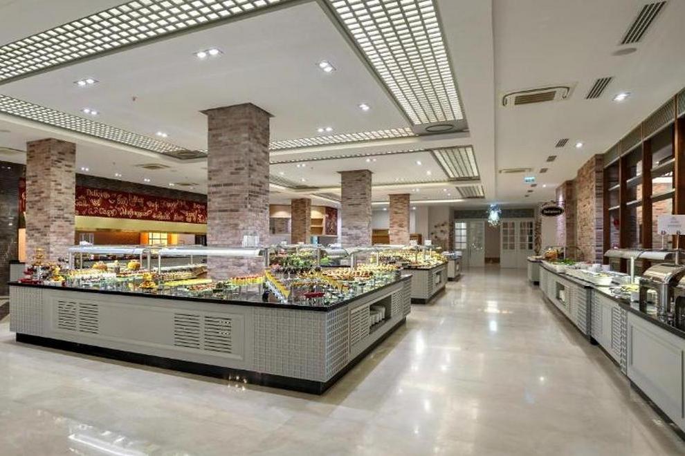 На разположение на гостите са основен ресторант с турска и интернационална кухня, 6 а`ла карт ресторанта - турски, италиански, мексикански, рибен, японски и източна кухня. Гостите могат да опитат освежаващи напитки в един от 9-те бара, има също суши бар, наргиле бар и сладкарница.
