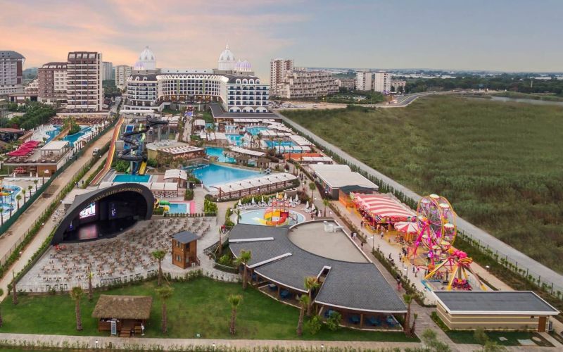 Хотелът разполага с основен ресторант, 4 а-ла-карт ресторанта (мексикански, османски, италиански и далекоизточен), 6 бара, дискотека, сладкарница, SPA център, 4 басейна, детски басейн, вътрешен басейн, аквапарк (5 пързалки за възрастни и 6 за деца), анимация, игрална зала, конферентна зала, WI-FI.