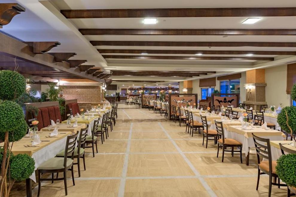 Основен ресторант, 4 a`лa карт ресторанта - платени (с предварителна резервация), 10 бара= Предложенията за хранене в Royal Wings включват традиционни турски и международни ястия на шведска маса, пресни морски дарове и италианска кухня. Гостите могат да опитат и прясно изпечени сладкиши в сладкарницата.