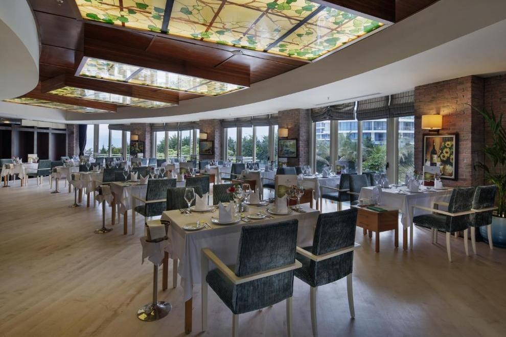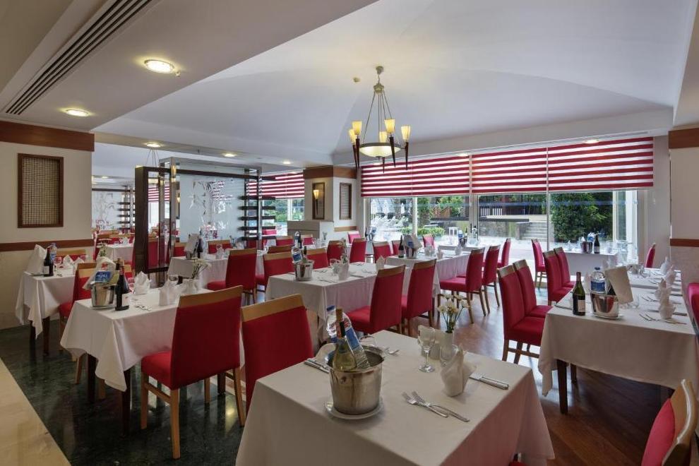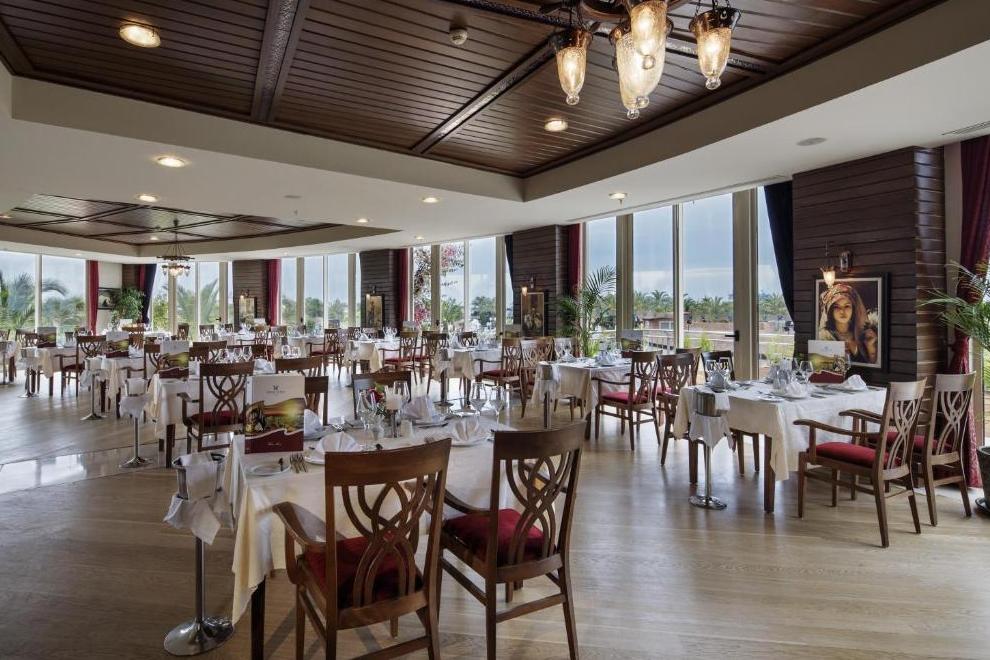 На разположение на гостите са основен ресторант и 4 а`ла карт ресторанта: Nysa Far East Restaurant - далекоизточна кухня; Pınara - турска кухня; Balbura - италианска кухня; BBQ ресторант и Sarpedon - рибен ресторант (срещу допълнително заплащане, със задължителна предварителна резервация). Има и снек ресторант, както и шатра за пица и гьозлеме. Разнообразни напитки се предлагат в 5 бара.