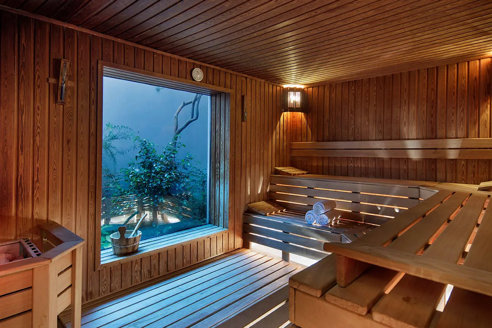 Собствен плаж, дълъг 110 метра, бар на плажа, има и кей. Основен открит басейн, релакс басейн за възрастни, детски басейн и вътрешен басейн.