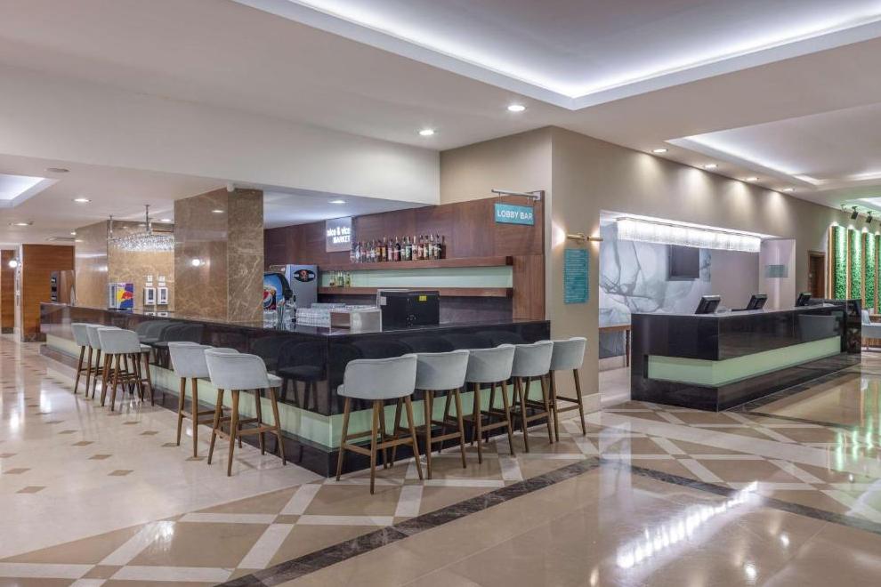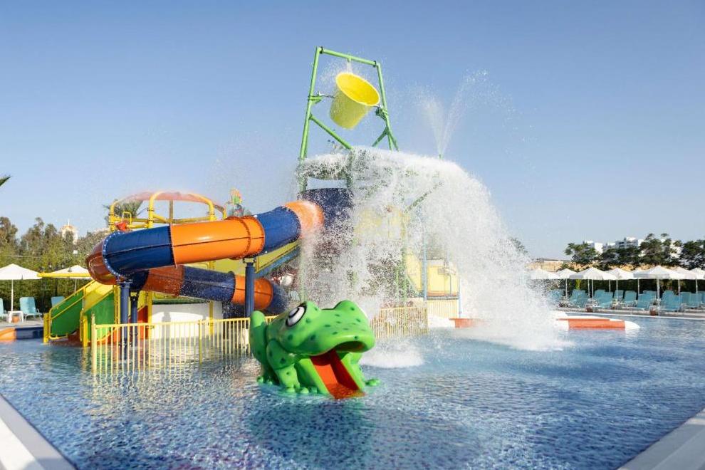 Хотелът има собствен пясъчен плаж със ситни камъчета, дълъг 150 м, който е на приблизително 500 метра от сградата, осигурен е безплатен шатъл. Има изкуствена платформа с площ от 500 кв. м. На разположение на гостите са 4 басейна и аквапарк.