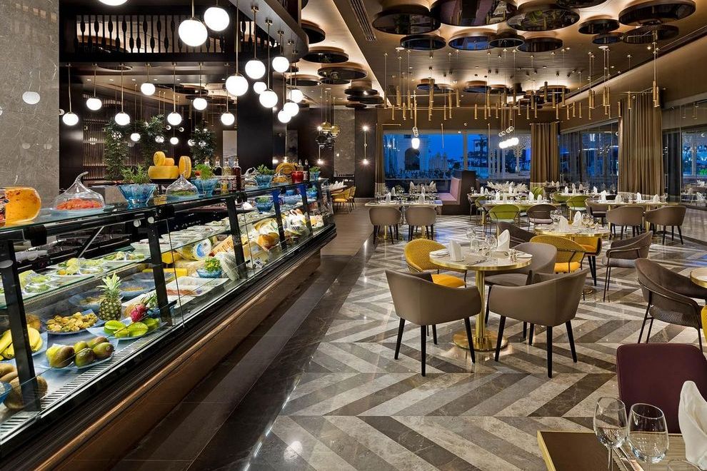 На разположение на гостите са основен ресторант, предлагащ диетично и вегетарианско меню, и 7 а`ла карт ресторанта: японски, рибенq руски, турски, средиземноморски, тайландски, ресторант Brasserie с традиционна френска и американска кухня. Освежаващи напитки, алкохолни и безалкохолни, закуски се поднасят в 11 бара.