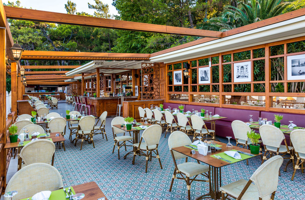 Хотелът разполага с основен ресторант, 3 а`ла карт ресторанта (турски, италиански, рибен, с предварително записване, 1 път седмично - безплатно), 5 бара.