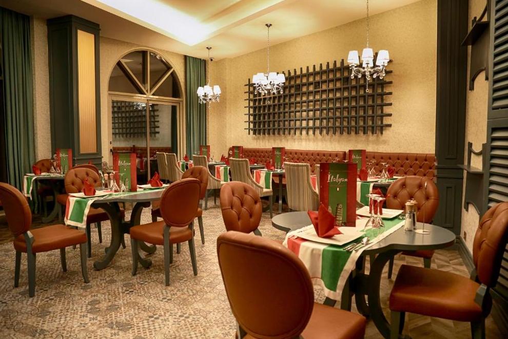 Основен ресторант, 5 а`ла карт ресторанта - италиански, азиатски, османски, мексикански и рибен. Освежаващи напитки и закуски се поднасят в 5 бара - лоби бар, бар на плажа, бар при басейна, Lounge Bar и диско бар.