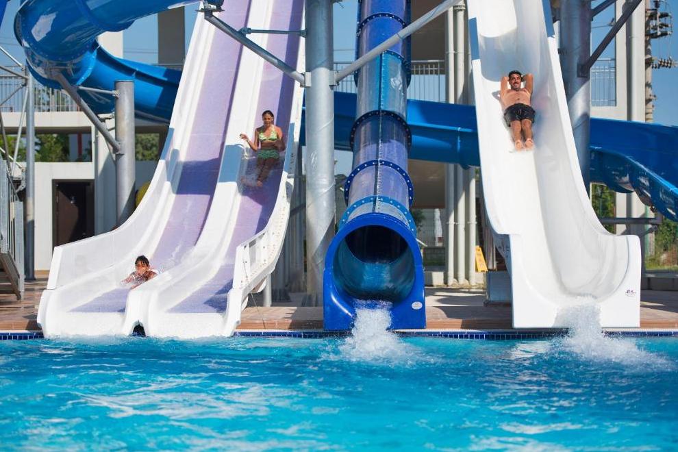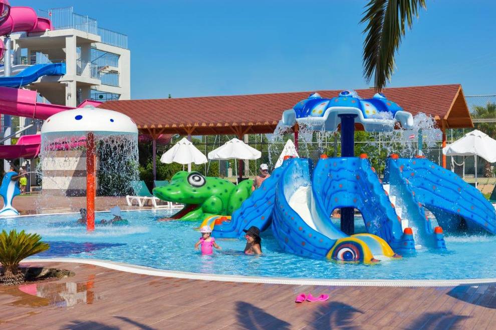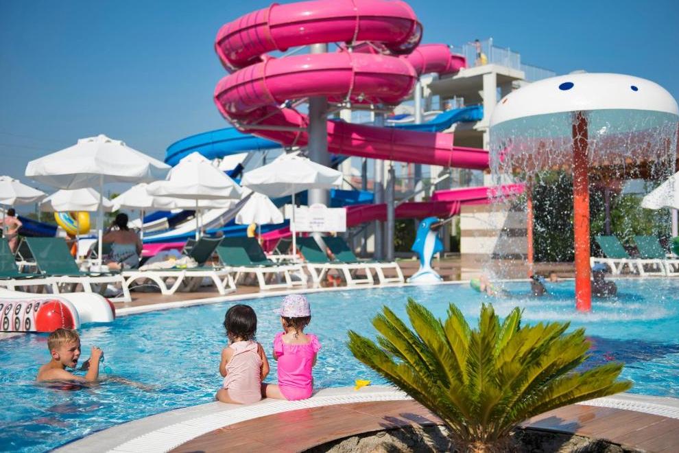 Хотелът разполага със собствен пясъчно-чакълест плаж с кей. Има и кей с площ от 1000 кв.м. За удобство на гостите предлага 2 големи плувни басейна с 4 пързалки и 2 детски басейна. При басейните и на плажа - чадъри, шезлонги, матраци и плажни кърпи се ползват безплатно.