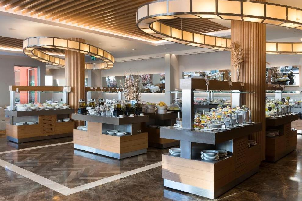 На разположение на гостите са основен ресторант и 2 а`ла карт ресторанта: италиански и интернационален - 1 безплатно посещение на 1 от ресторантите при минимум 7 нощувки). Освежаващи напитки и закуски се предлагат в 3 бара, кафе-сладкарница,