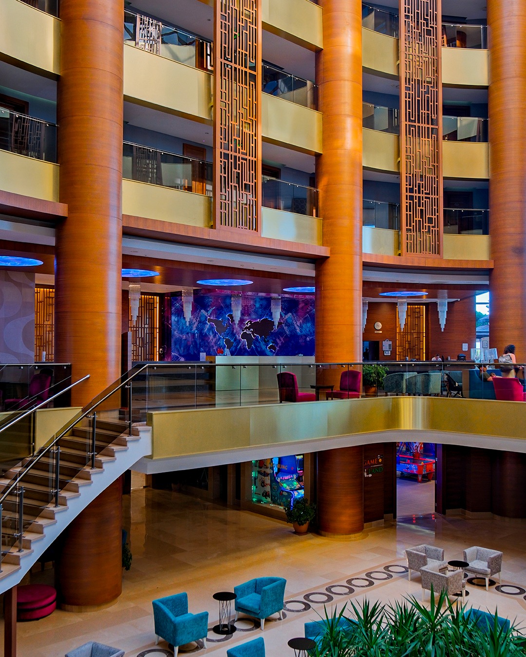 Основен ресторант, 4 а-ла-карт ресторанта (турски, италиански, китайски – 1 безплатно посещение на 1 от ресторантите при минимум 7 нощувки, с предварителна резервация; рибен - срещу заплащане, с предварителна резервация), 2 снек ресторанта, 5 бара, 3 открити и 1 закрит басейн, аквапарк с 6 водни пързалки за възрастни и 2 за възрастни, СПА център, магазини, 1 конферентна зала.