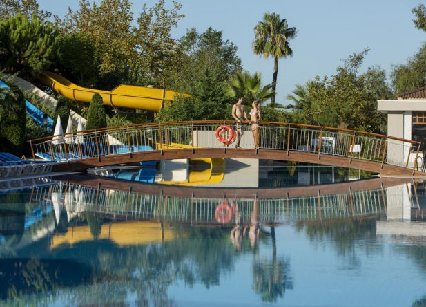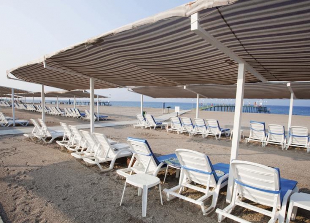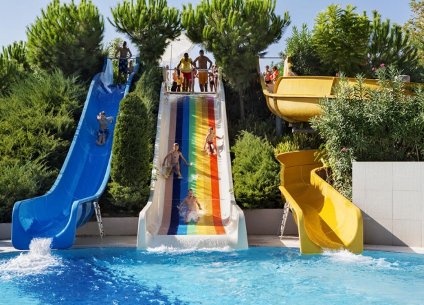 Собствен пясъчно-чакълест плаж и 3 открити басейна, закрит басейн, 4 водни пързалки. При басейна и на плажа чадъри, шезлонги, матраци, плажни кърпи се предоставят безплатно.
