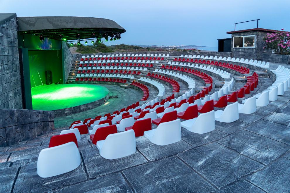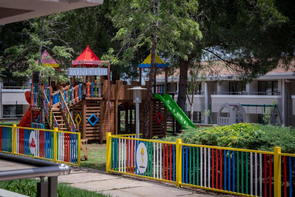 Собствен пясъчно-чакълест плаж на около 200 м от хотела, има кей. На разположение на гостите са открит басейн и аквапарк с 6 пързалки.