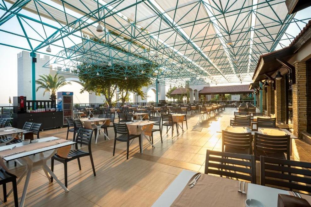 На разположение са основен ресторант и два а`ла карт ресторанта: турски и рибен. Освежаващи напитки и закуски се поднасят в лоби бел, бар на плажа, бар при басейна, Relax Bar и Cafe Garden.