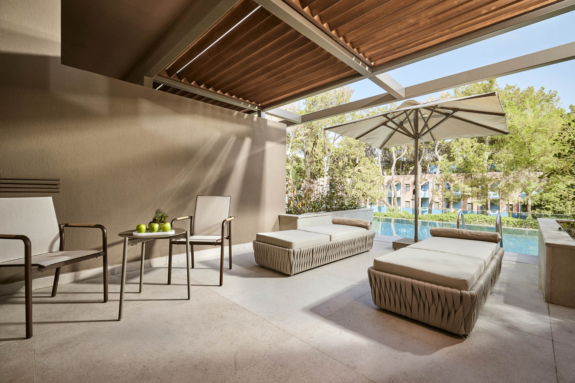 Хотелът разполага с общо 313 стаи, разположени в 6-етажна основна сграда, от които Standard Room (с изглед природа или море - 36-45 м2), Superior Standard Room with Jacuzzi (с джакузи на терасата, изглед море – 49 м2), Swim-Up Room (с директен достъп до басейн от терасата, изглед природа – 57 м2), Infinity Swim-Up Room (с директен достъп до басейн от терасата, морска гледка – 56-62 м2), Family Room (2 отделни спални, 1 баня – 50 м2), Superior Family Suite (2 отделни спални, 2 бани, 1 балкон – 66 м2), Lagoon Suite (1 спалня, 1 баня, с директен достъп до басейн от терасата, изглед градина и басейн – 59 м2), Dublex Lagoon Suite (1 спалня, 1 дневна, 2 бани, разположени на 2 етажа, с директен достъп до басейн от терасата, изглед градина и басейн – 81 м2), Honeymoon Penthouse (разположен на последния етаж с морски изглед, 1 спалня, 1 баня, гардеробна, с джакузи на терасата – 69 м2), Loft Penthouse (разположен на последния етаж с морски изглед, 1 спалня, 1 дневна, 2 бани, с джакузи на терасата – 127 м2), Fabulous Suite (1 спалня, 1 дневна, 2 бани, с директен достъп до собствен басейн (27 м2) на терасата – 100 м2), Presidental Suite (3 спални, 1 дневна, 3 бани, с директен достъп до собствен басейн (90 м2) на терасата – 290 м2).