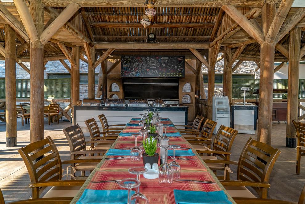 На разположение на гостите са основен ресторант и 5 а`ла карт ресторанта: китайски, рибен, италиански, турски, мексикански – с предварителна резервация, срещу заплащане),. Освежаващи напитки и закуски се поднасят в лоби бар, бар при басейна, бар на плажа, Dragon Bar (на плажа), Sea Bar, Cafe House, Кафе-сладолед, диско бар.