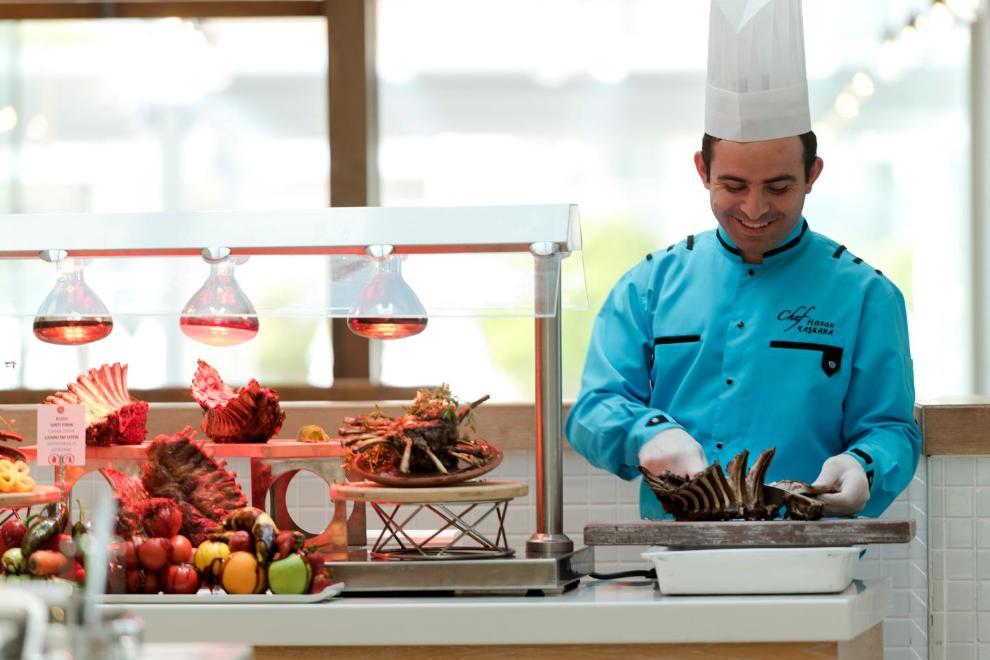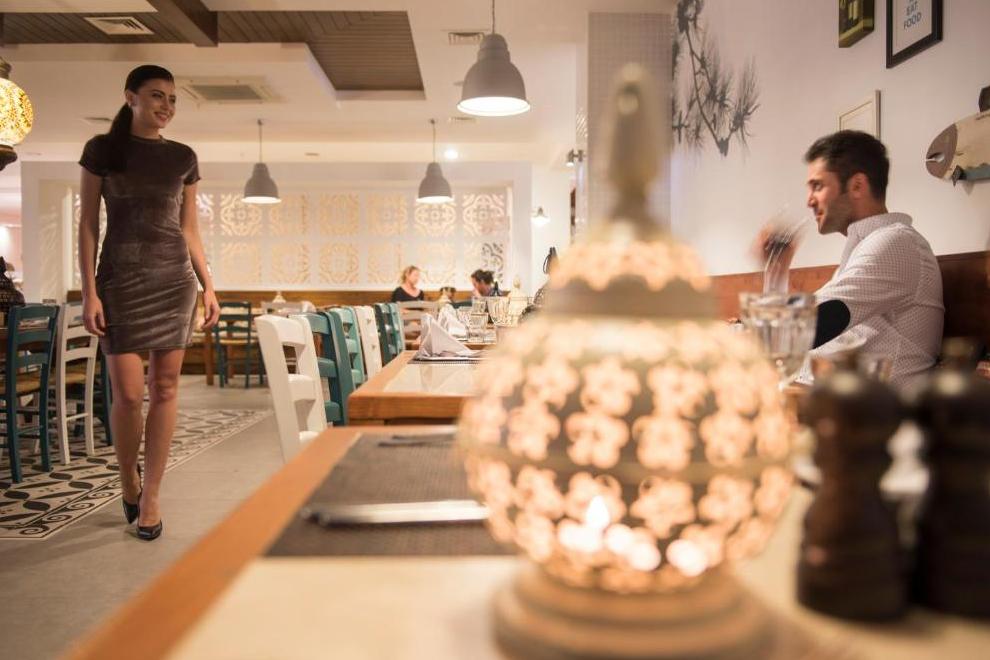Хотелът разполага с основен ресторант, тераса-грил ресторант и ресторант на плажа. В 2-та бара се предлагат освежаващи напитки. All Inclusive – закуска, обяд и вечеря на блок маса, междинни хранения, местни алкохолни и безалкохолни напитки – без лимит.
