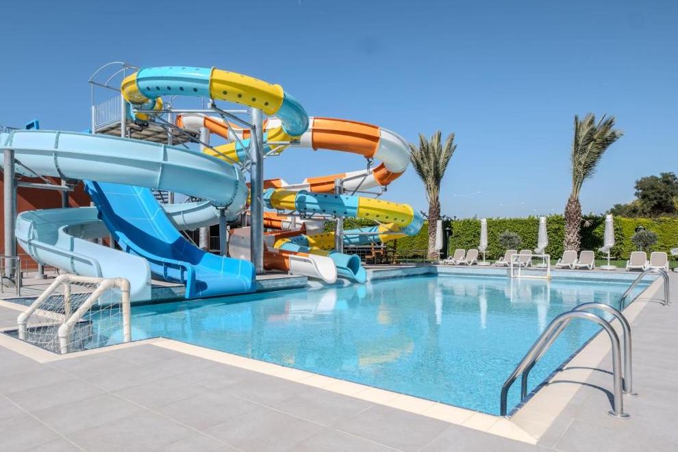 Собствен пясъчен плаж на 600 м от хотела, с дължина 100 метра. Външен басейн 2057 кв.м; открит полуолимпийски басейн (работи през летния сезон) 640 кв.м; Вътрешен басейн 248 кв.м. Времето за загряване на басейните се определя от администрацията на хотела в зависимост от сезонните условия.