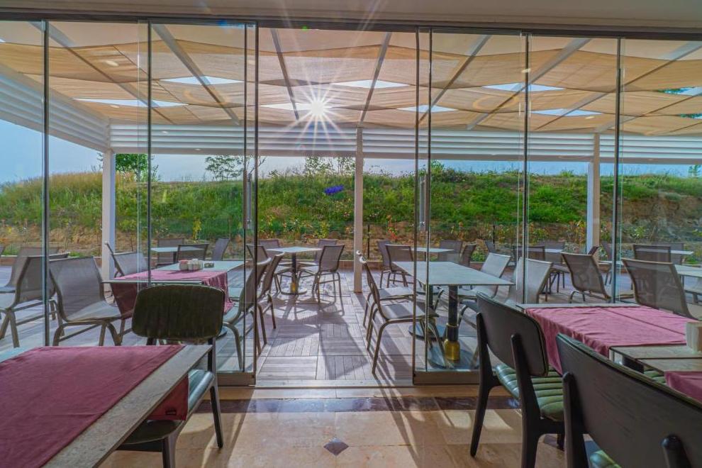 Собствен пясъчен плаж на 550 м от хотела. Открит басейн за възрастни: 500 кв.м, детски басейн 55 кв.м и две водни пързалки - по една за възрастни и деца.