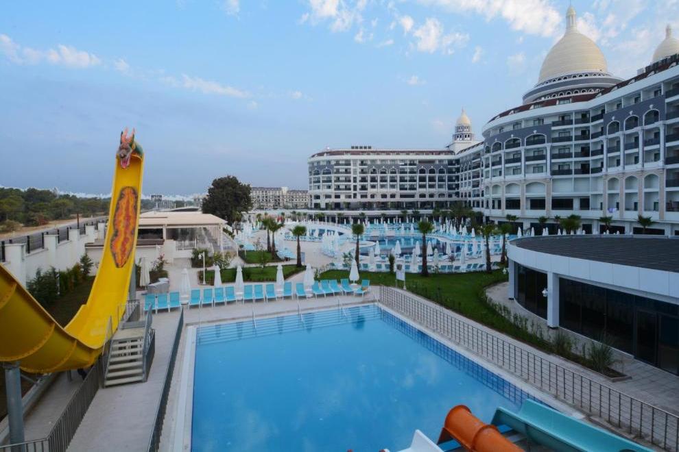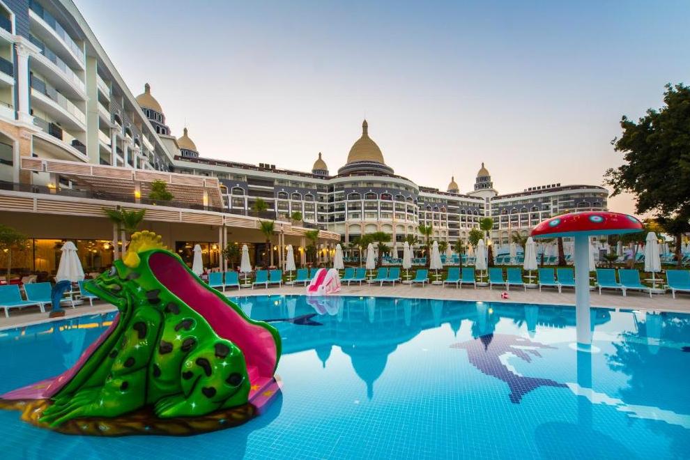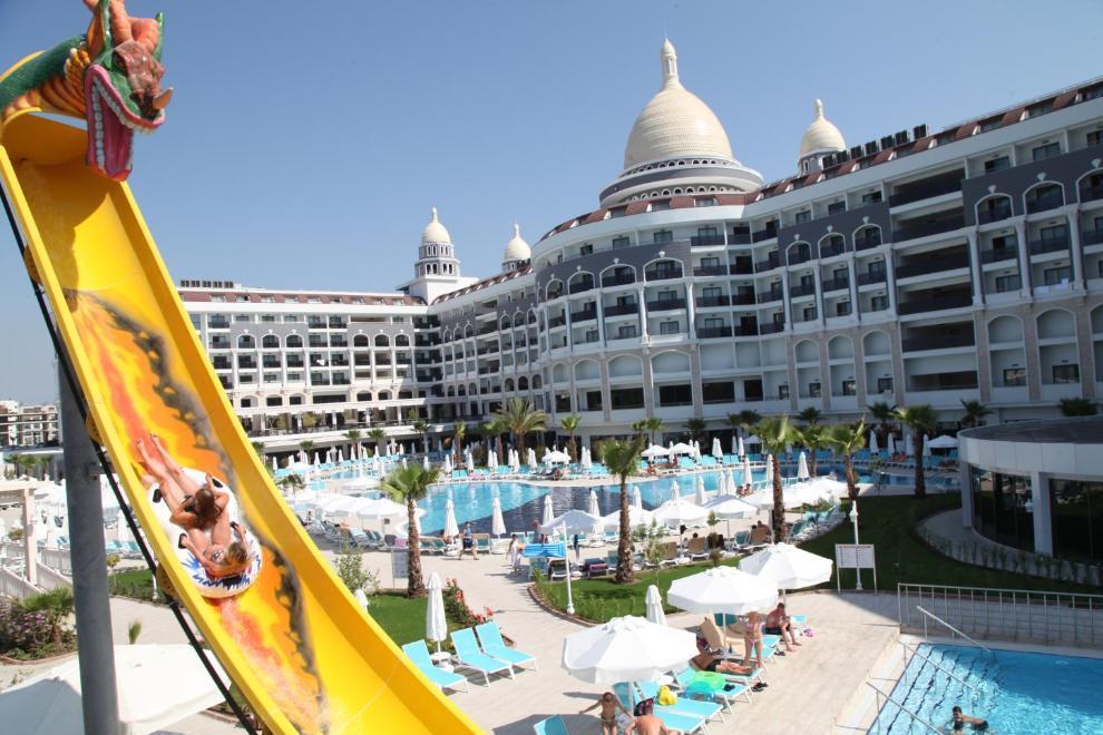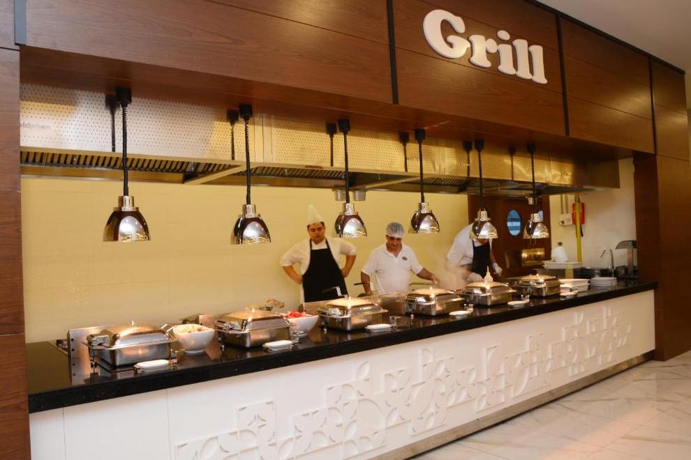 Хотелът разполага с основен ресторант (предлага се и диетично меню), а`ла карт 4 ресторанта: турски, италиански, рибен - с предварително записване, за 7 нощувки се полага безплатно 1 посещение); стек хаус - (срещу допълнително заплащане), има и 5 бара.