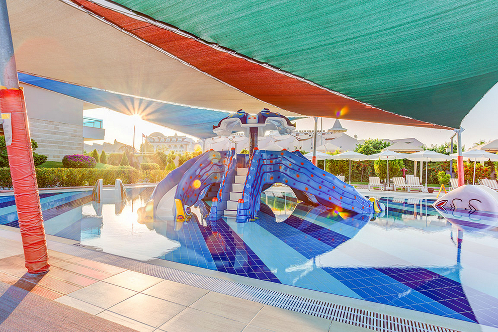 На разположение на гостите са основен бюфет ресторант (организират се тематични вечери) и 7 а`ла карт ресторанта: бързо хранене, турска кухня, морски дарове, международна кухня, италианска кухня, японска кухня и стекхаус. Освежаващи напитки и закуски се поднасят в 5 бара и кафе сладкарница.