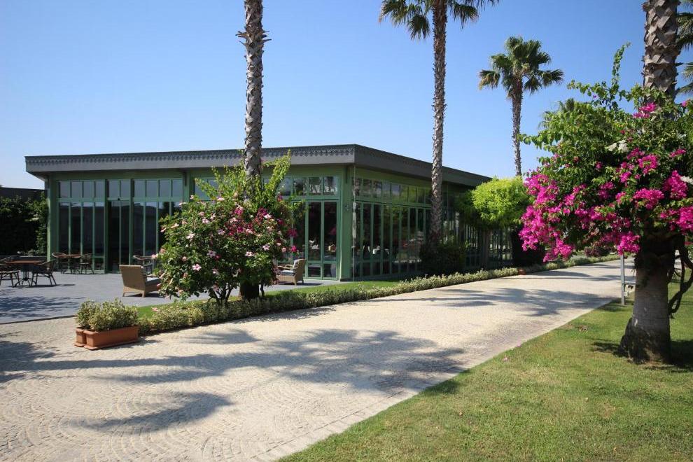 Хотелът се намира на първа линия и има собствен широк пясъчен плаж. За своите гости предлага още 7 открити басейна и тераса за слънчеви бани.