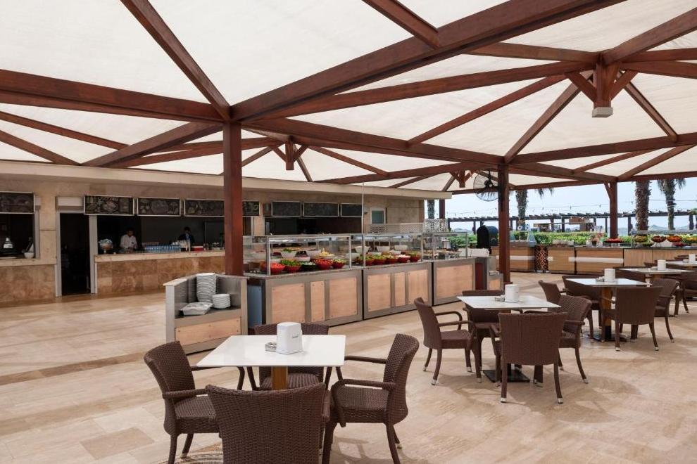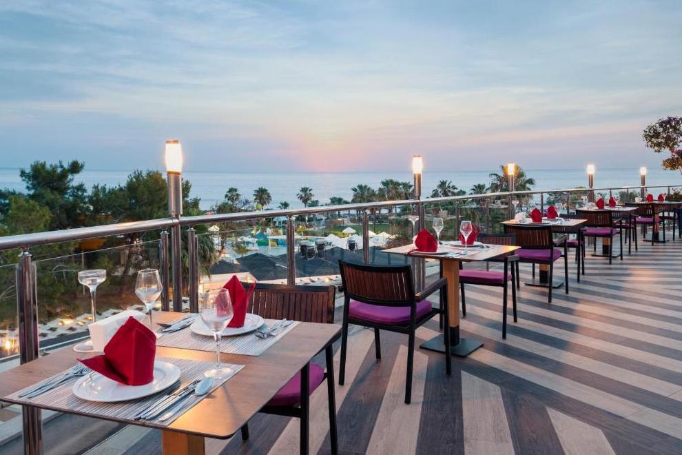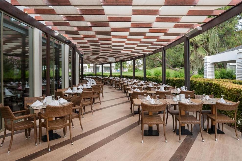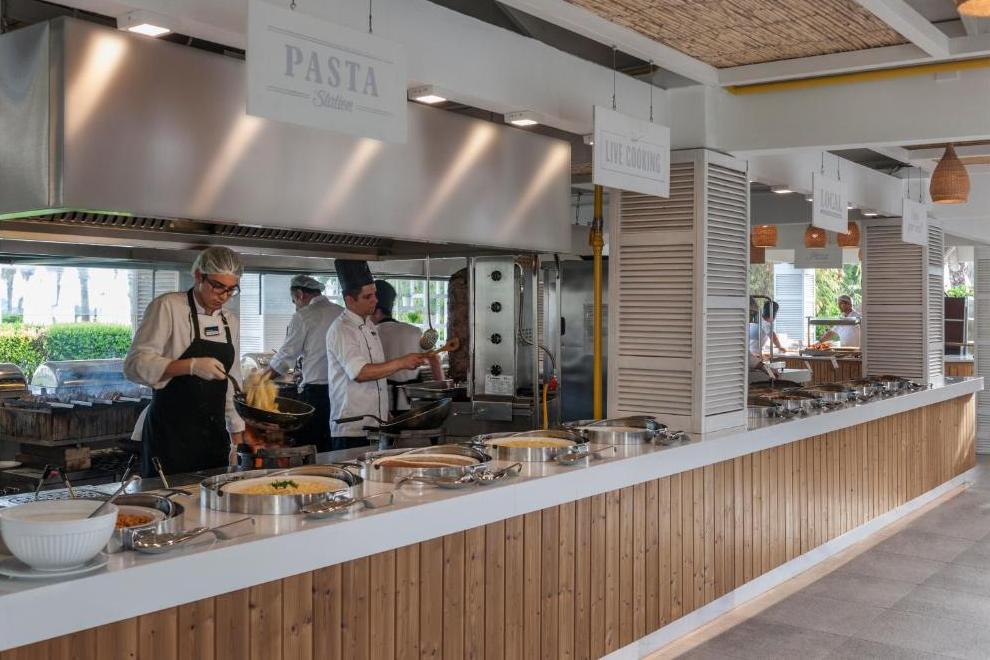 На разположение на гостите са основен ресторант и 3 а`ла карт ресторанта: таверна, италиански ресторант и барбекю ресторант. Освежаващи напитки и закуски се поднасят в 4 бара - лоби бар, бар на плажа, бар при басейна, Cafe Turk.