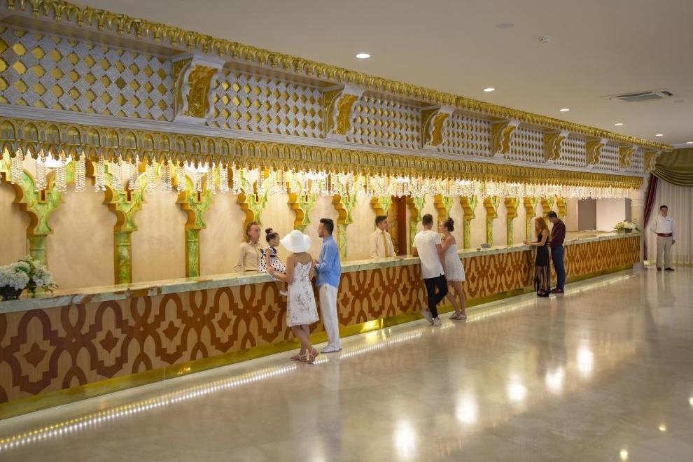 Хотел Royal Alhambra има собствен пясъчен плаж. Между хотела и плажа минава пешеходна алея. Безплатен бар на плажа. Разполага с 2 открити басейна с прясна вода, неотопляеми. 1 закрит басейн (отворен от 01.11 до 31.03). 5 водни пързалки за възрастни и 3 пързалки за деца (за деца под 10 години), неотопляеми. Аквапарк с работно време: 10:00-12:00 ч / 15:00-17:00 ч. Времето за отваряне и затваряне може да се промени през сезона. Пързалките може да бъдат затворени поради метеорологични условия. Външните басейни са затворени през зимния сезон.. На басейна и на плажа чадъри, шезлонги, плажни кърпи се предоставят безплатно. Заплаща се смяната на кърпи.