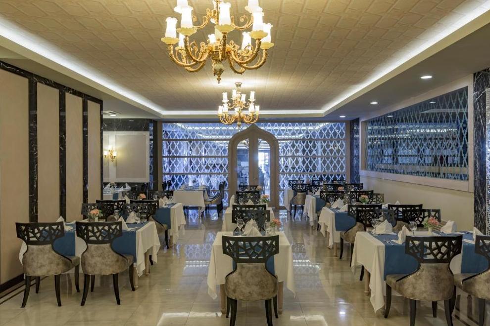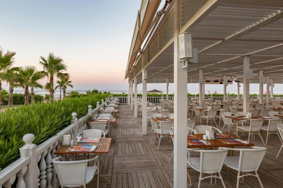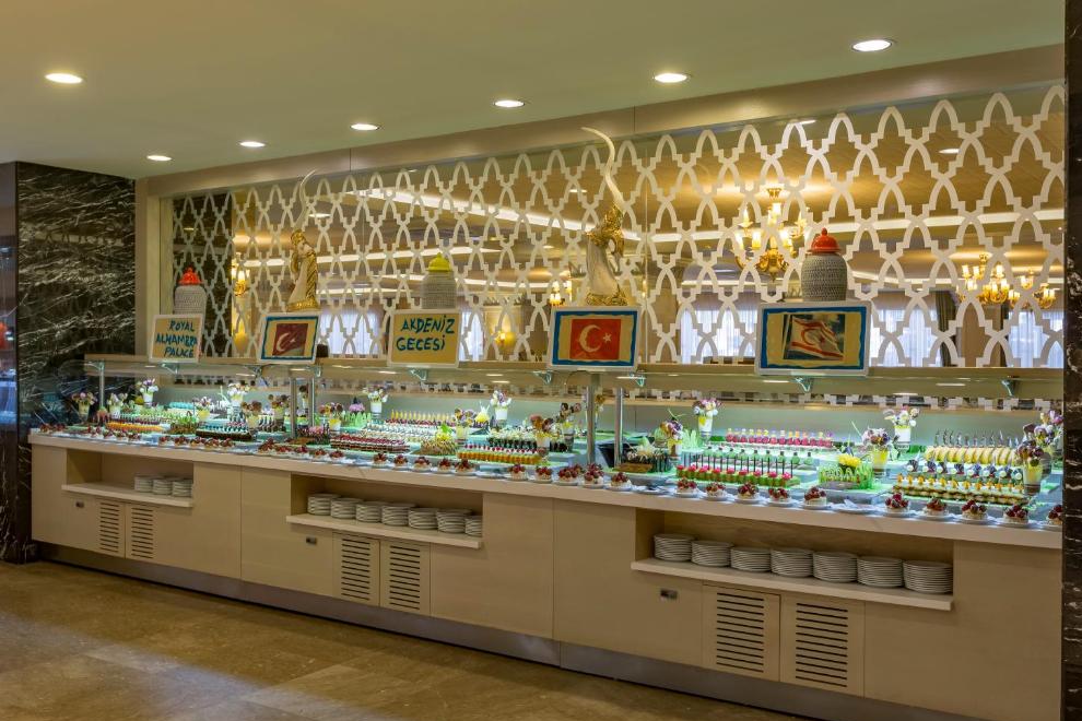 На разположение на гостите са основен ресторант Alhambra, в която се предлага закуска и вечеря, Bistro за късна закуска и нощна закуска, снек бар. 5 а`ла карт ресторанта: Fettucine - италиански, Miyako - далекоизточна кухня, Kuzine - турска кухня, Captain - рибен, La Viva Fiesta - мексикански. Освежаващи напитки и закуски се предлагат в 6 бара, дин от който работи денонощно.