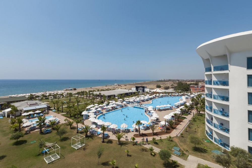 Основен ресторант, 3 алакарт ресторанта - рибен, италиански и турски, 3 бара (лоби бар, снек бар и бар на плажа), 2 външни басейна (един с 8 пързалки и един релакс басейн), 1 външен детски басейн и 1 вътрешен, конферентна зала, магазин, СПА център, водни пързалки. Безплатни услуги: паркинг, безжичен интернет (в общите части), сауна, парна баня, фитнес, тенис на маса, дартс, плажен волейбол, вечерни развлекателни програми Платени услуги: СПА център, масаж, химическо чистене, пране, фризьорски салон, обмяна на валута, сейф, водни спортове За децата: водни пързалки, анимация, детски кът за игра, детска площадка, детско меню, детска дискотека