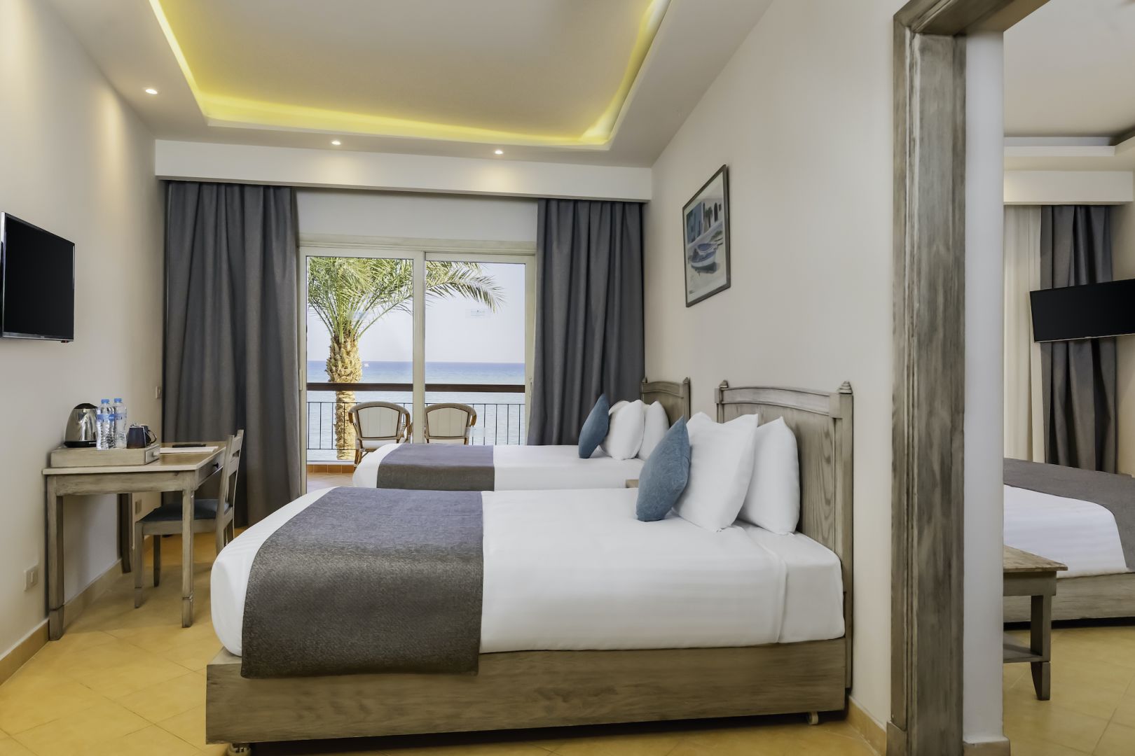 Всички стаи са оборудвани с климатик, телевизор, телефон, баня с душ/вана, сешоар, сет за чай/кафе, минибар (зарежда се с вода), сейф, Wi-Fi (безплатен), балкон/тераса. Почистване на стаите и смяна на кърпите - всеки ден, смяна на спално бельо – 2 пъти в седмицата.