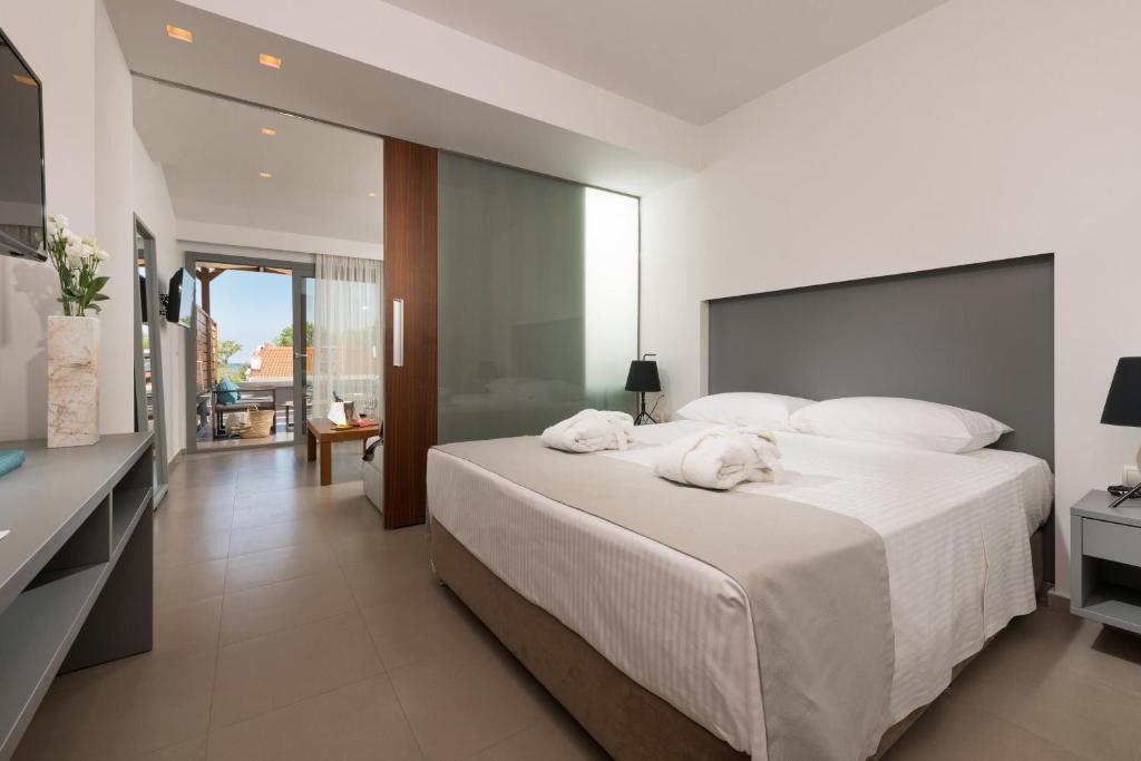 В стаите: Всички стаи са оборудвани с климатик, телевизор, минибар, сейф, сешоар, Wi-Fi. Някои от тях са с гледка към планината и ограничен изглед към морето.